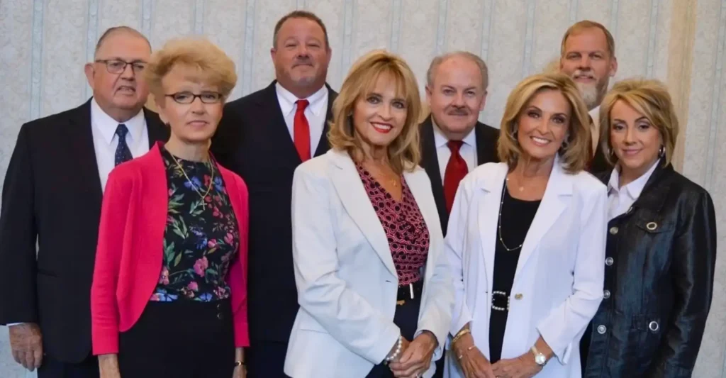 Hart Funeral Home Staff (left to right front) Janet Smallwood, Lue Cole, Ty Hart, Kim Raley (left to right back) Eldon Davis, Jr., Darris Broughton, Michael Hart, Doug Miracle.